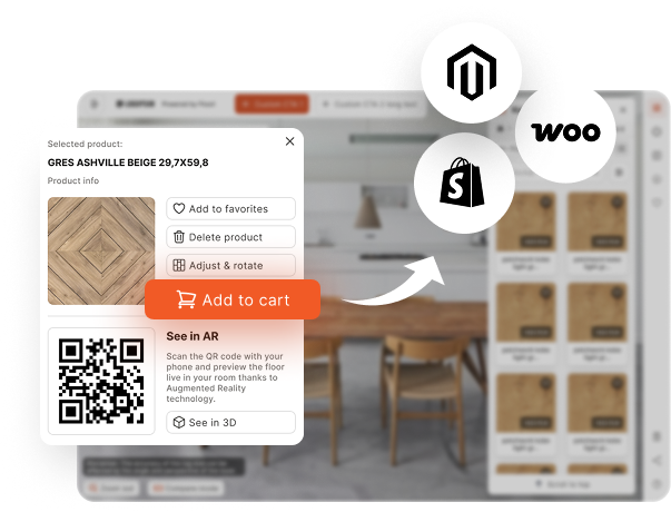 - Visualizer – the customer-facing tool that shows buyers exactly how products look in real spaces – embedded on websites, kiosks, or a Floori subdomain.